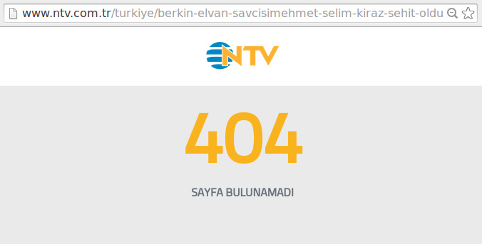 Fakat; 6 Nisan tarihinde halen erişebildiğim NTV haberi, 8 Nisan’da “404 sayfa bulunamadı” başlıklı bir sayfaya yönlendiriliyordu. 9 Nisan gecesi ise artık sayfa Google sonuçlarında bile çıkmıyor. Google Cache’te kaydedilen kopyası da silinmiş.
