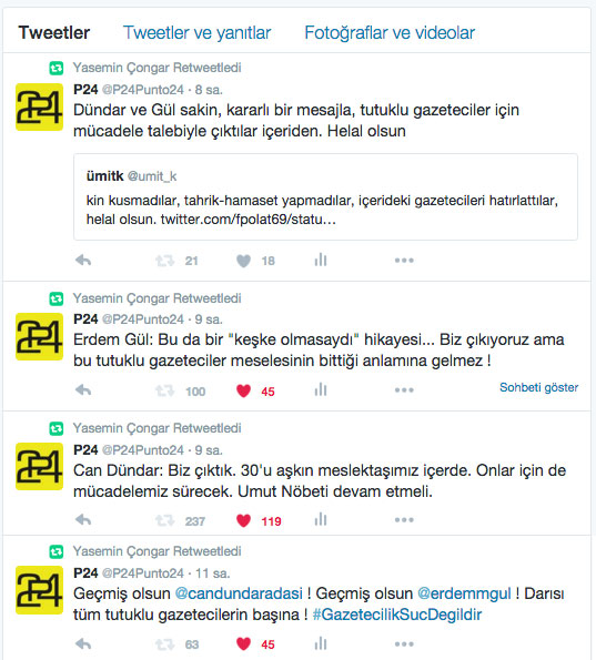 Dündar ve Gül'ün serbest bırakılmaları P24'ün twitter hesabından da dakika dakika paylaşıldı.