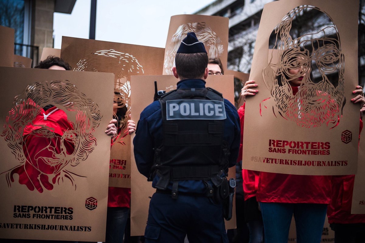 5 Ocak günü, Sınır Tanımayan Gazeteciler (RSF) örgütü Paris’teki Türkiye Büyükelçiliği önünde tutuklu gazeteciler için bir gösteri düzenledi.