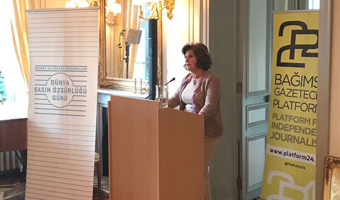 Carol Giacomo, a member of the New York Times editorial board, delivered this year’s Mehmet Ali Birand lecture, an annual event organized by Punto24 Platform for Independent Journalism (P24) to mark May 3 World Press Freedom Day.