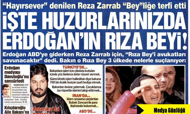 Gazetelerin manşetinde, Erdoğan’ın “Rıza Bey”in tutuklanmasıyla ilgili sözleri yer alırken, havuz medyası ise hiç duymamış gibi yaptı.