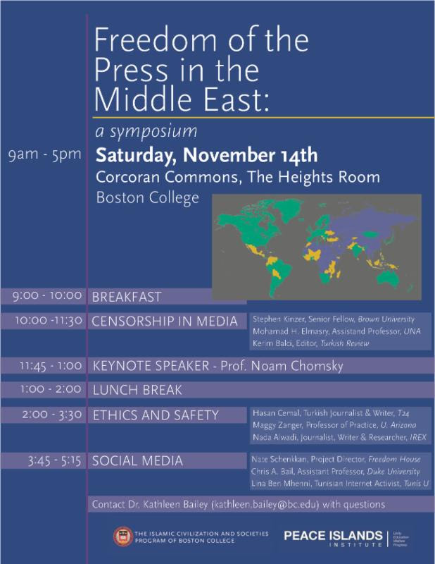 With its focus on the ‘’Freedom of the Press in the Middle East,’’ the symposium featured academics and journalists with vast experience in the region and Noam Chomsky gave the keynote speech.